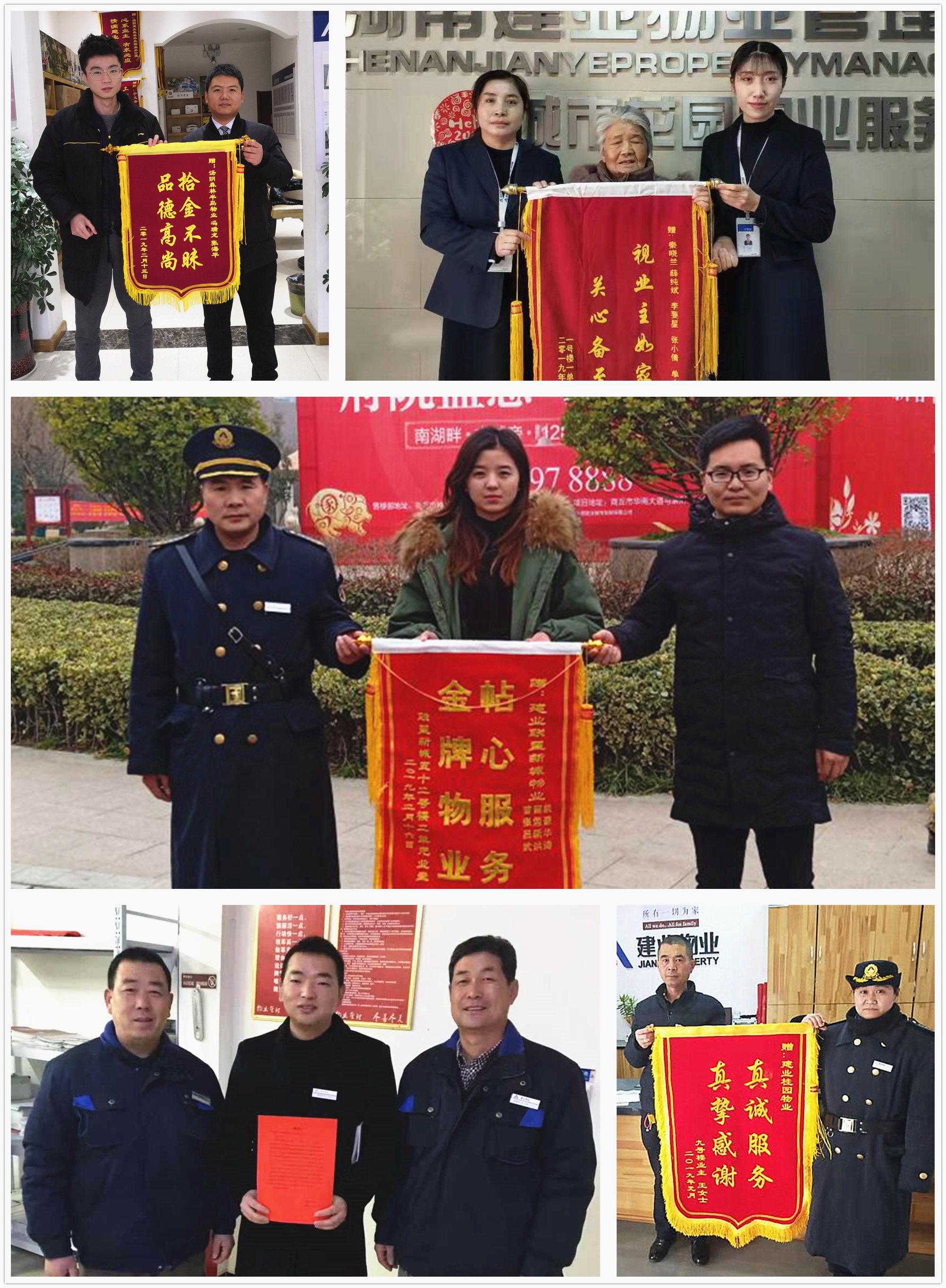 二月,冬日的寒意尚未褪去,初春的暖風(fēng)還未吹來。建業(yè)物業(yè)人一如既往地堅守在各個崗位上,持續(xù)不間斷地為業(yè)主提供著暖心服務(wù)。本月,全省各地共涌現(xiàn)出拾金不昧、技術(shù)高超、熱情服務(wù)、助人為樂等好人好事182例,其中收到錦旗33面,感謝信77封,來電感謝及其他72起。