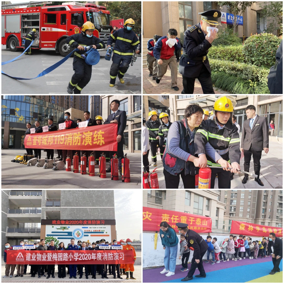 在專業(yè)人員的協(xié)助下,建業(yè)物業(yè)在小區(qū)、附近校園等地打造了一場場高品質(zhì)消防演習(xí)。模擬滅火器、消防水槍滅火,組織人員疏散及逃離,每個項(xiàng)目在執(zhí)行過程中雖緊迫,但通過專業(yè)的學(xué)習(xí)之后,參與活動的物業(yè)人與業(yè)主都能從容應(yīng)對,即使是年齡較小的兒童也能順利完成任務(wù)。