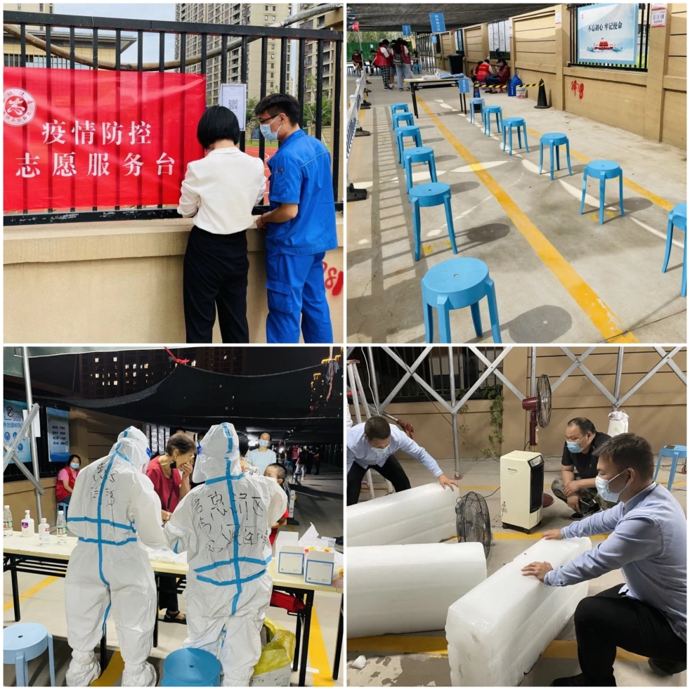 對(duì)醫(yī)護(hù)人員的守護(hù)一直沒(méi)變。全力配合醫(yī)護(hù)人員、社區(qū)工作人員做好核酸檢測(cè)工作,建業(yè)物業(yè)不分白天黑夜,一直都在。與此同時(shí),建業(yè)物業(yè)通過(guò)放置風(fēng)扇、冰袋、冰塊等多種方式打造檢測(cè)環(huán)境,讓工作人員更舒服一點(diǎn)。